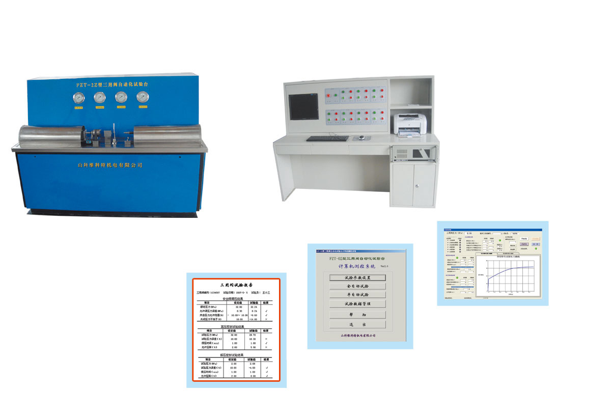 FZT-2Z型三用閥自動(dòng)化試驗(yàn)臺(tái)是公司研制的新一代三用閥試驗(yàn)臺(tái),是集機(jī)械、液壓、電子、計(jì)算機(jī)技術(shù)于一體的高科技產(chǎn)品,具有結(jié)構(gòu)合理、功能完善、操作簡(jiǎn)便、自動(dòng)化程度高等特點(diǎn)。廣泛應(yīng)用于單體液壓支柱三用閥的高低壓密封試驗(yàn)、工作壓力調(diào)定、開啟壓力和關(guān)閉壓力的測(cè)定等。